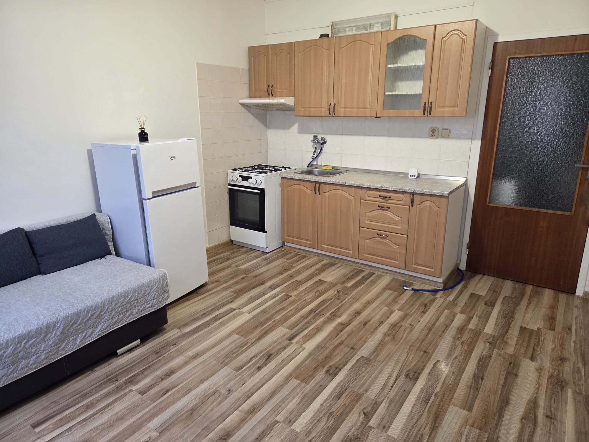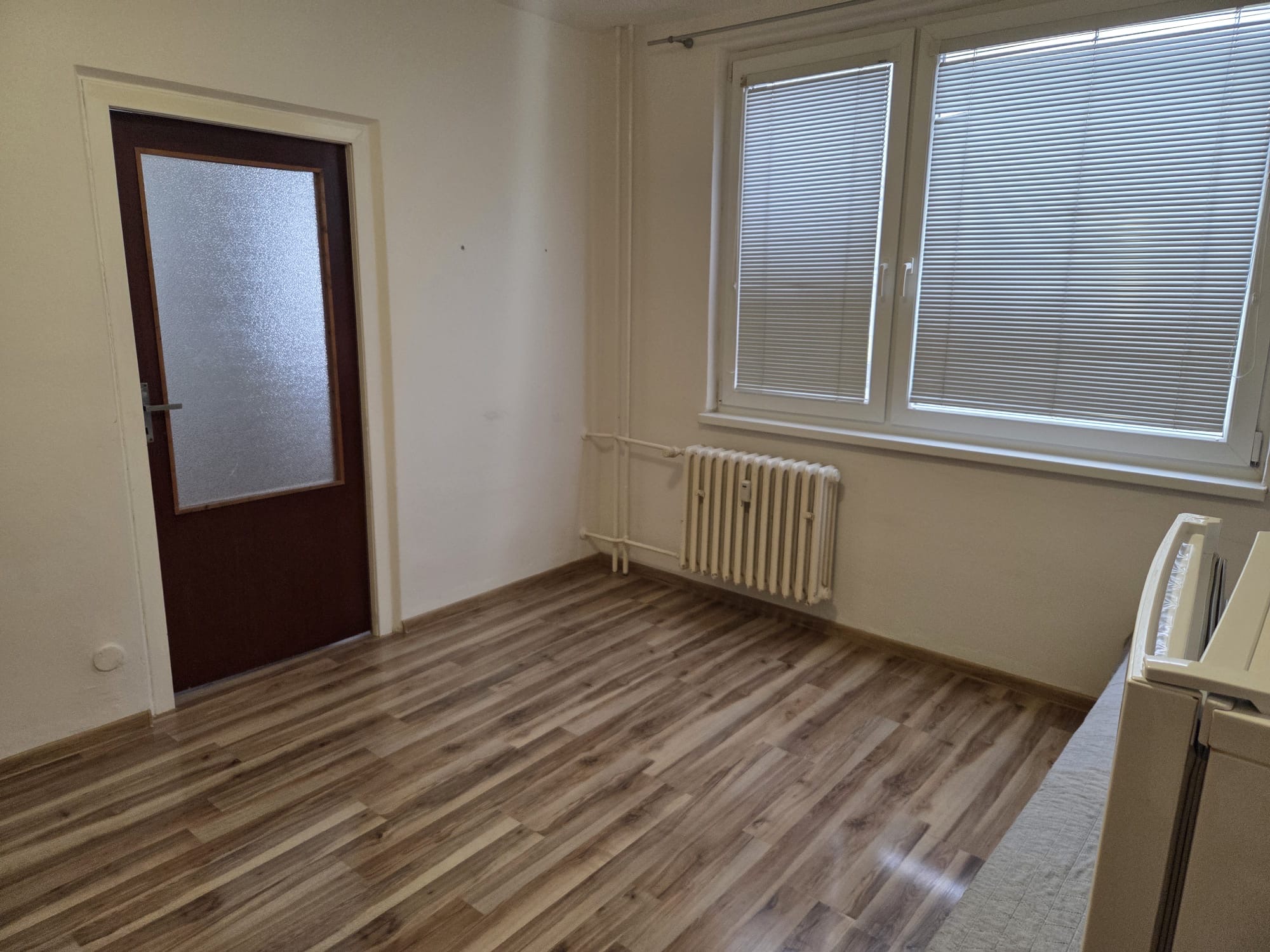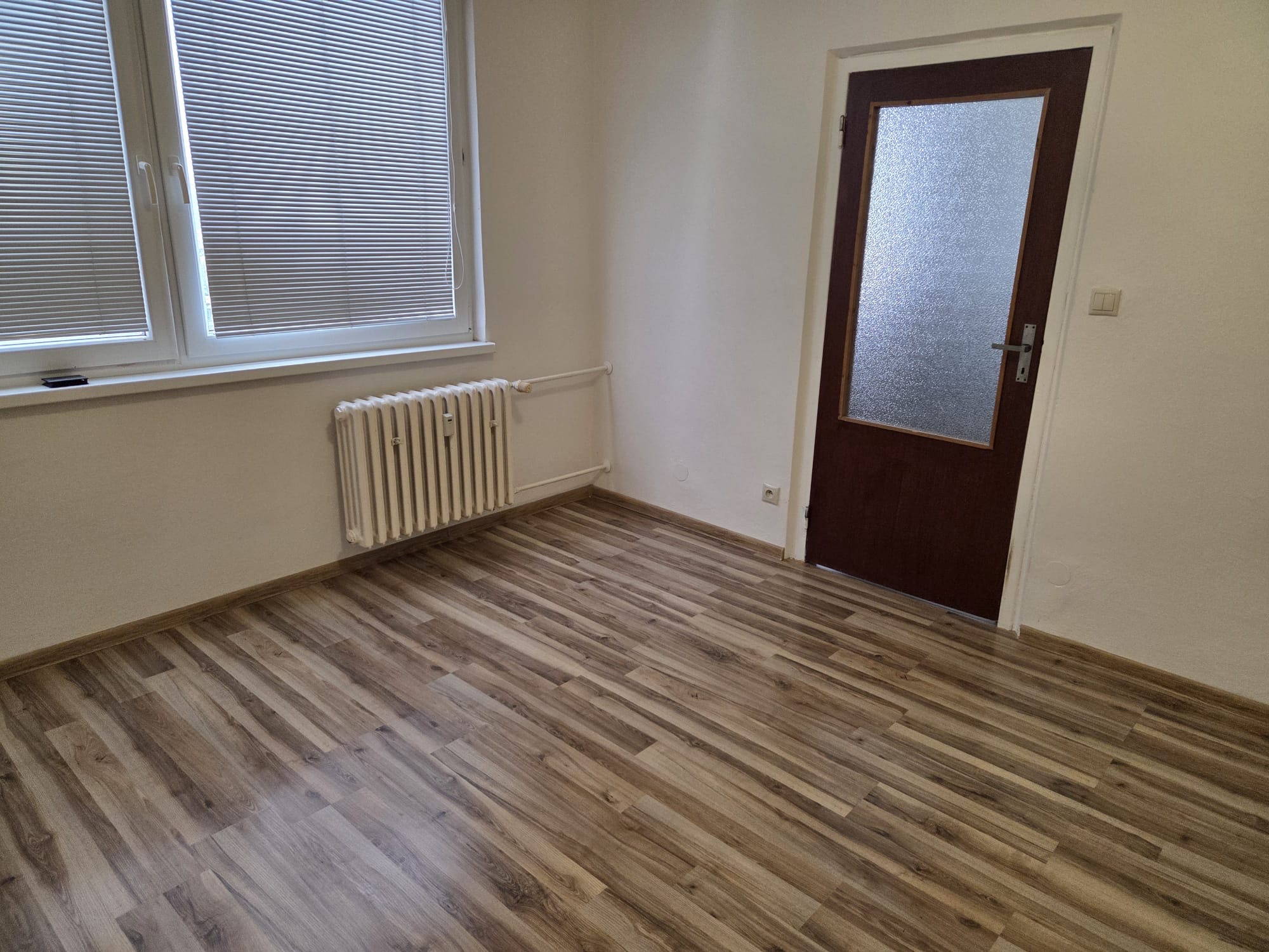 Byt je po čiastočnej rekonštrukcii, má plastové okná a úplne novú plávajúcu podlahu. Kúpeľňa a toaleta sú v pôvodnom stave.